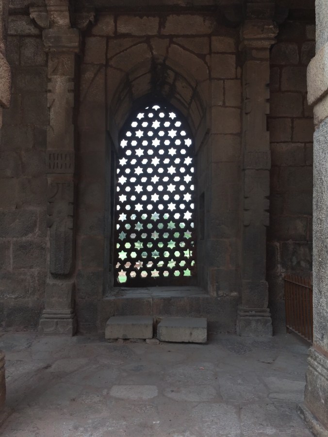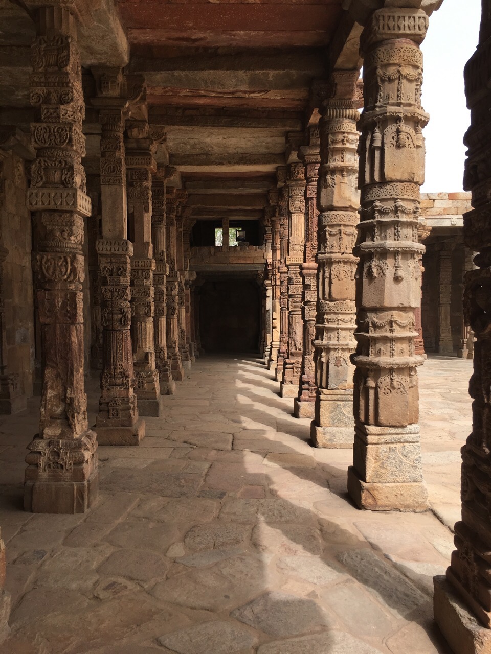 The next place we went to was Qutab Minar. It is also made of red sandstone and marble. Standing under the sandstone is cooling and like Jama Masjid, brings relief in the Delhi heat. Qutab Minar was established along with Quwwat-ul-Islam mosque in 1192. Qutab Minar is now a UNESCO world heritage sight.