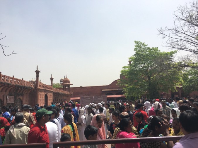 When we got to the ticket counters, it was packed. Indians were lined up by the dozens under the hot sun. Preference was given to foreigners who pay a rate of 1000 INR allowing us to cut lines. Indians pay 40 INR.