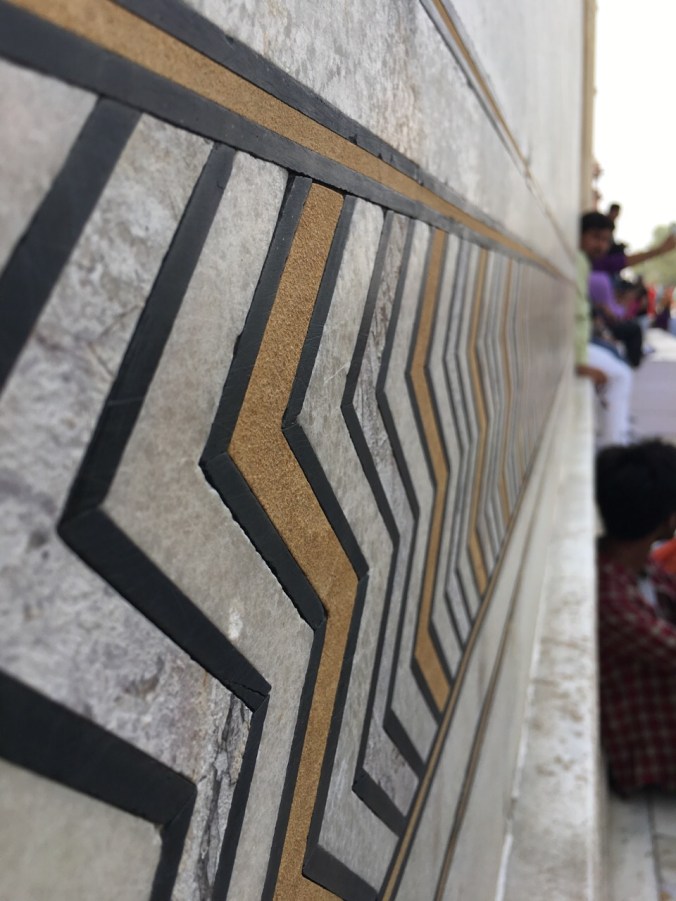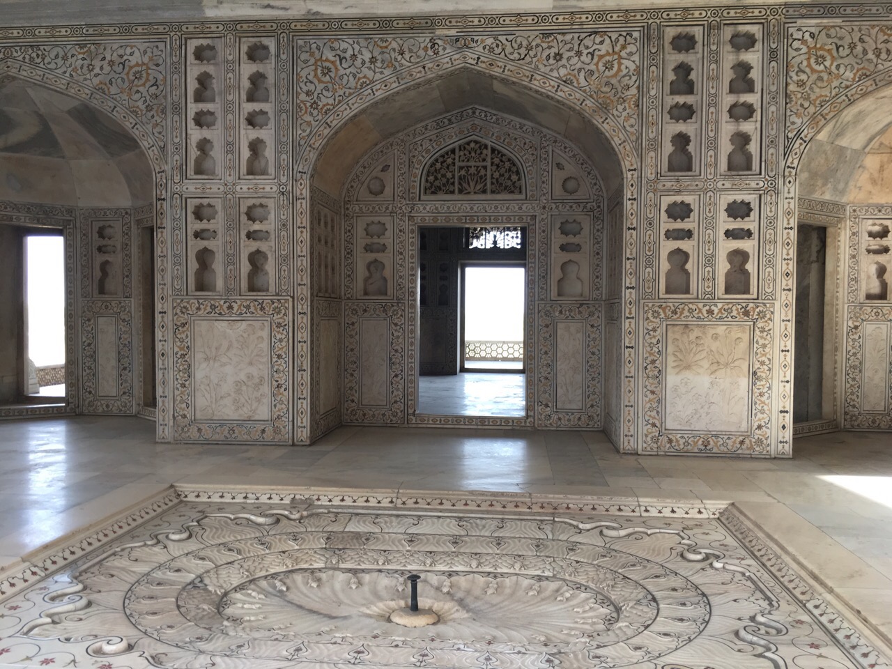 Marble aka Shah Jahan’s signature.Shah Jahan spent the last few years of his life in his section of the fort imprisoned by his son. Shah Jahan’s section overlooked the Taj Mahal where he could see the final resting place of his beloved wife.