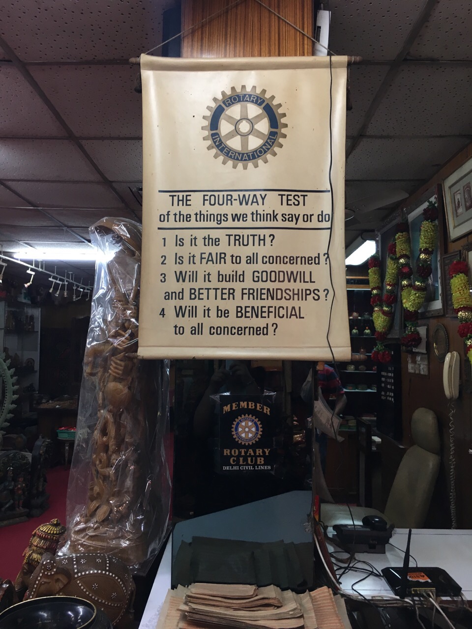 Rise.After Chandni Chowk, we went to a store where I noticed the Rotary International Four Way test. I was so excited to see it and the people in store were so excited that I knew what it was. Rotary is truly universal. And that’s the beauty of it.