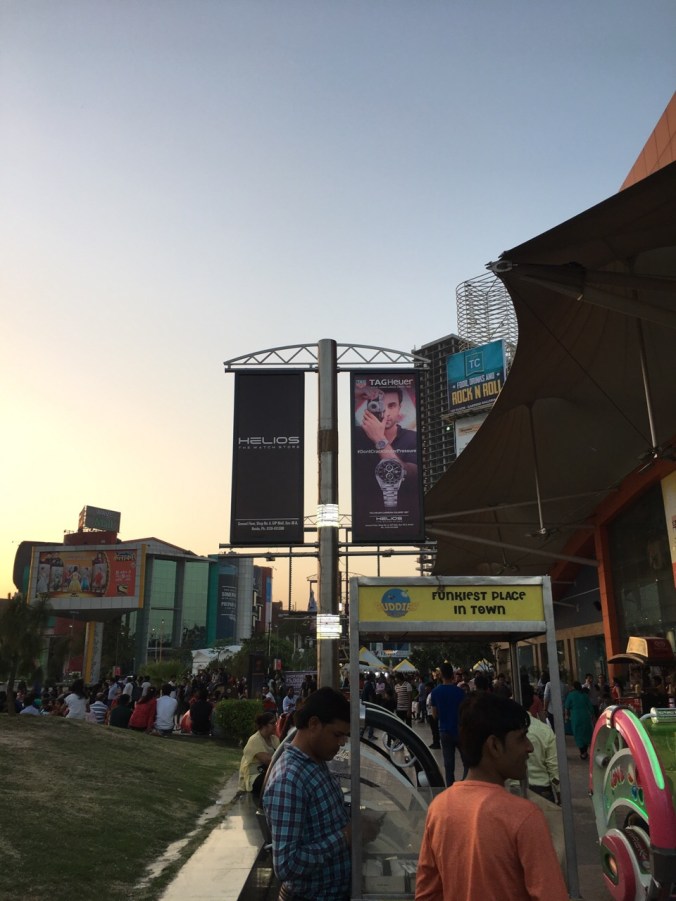 Worm’s eye view.The best part of the Great India Place, is the vibe. Outside, there were couples and families, men and women, children and old people. Everyone just chilling, strolling, chatting and laughing.