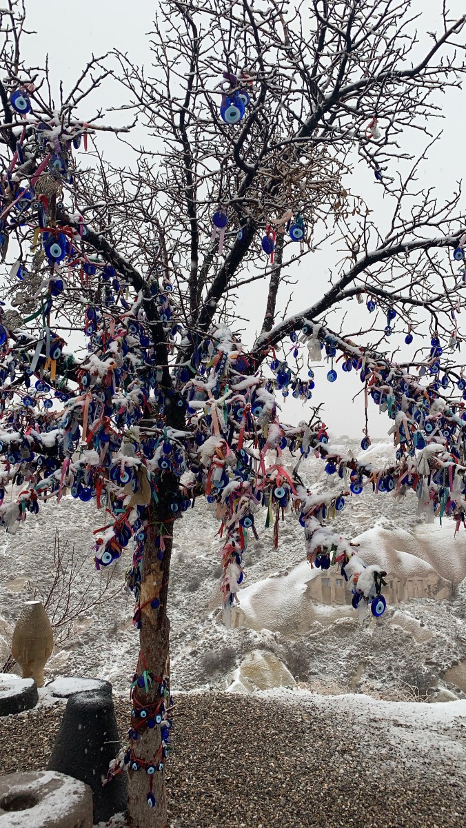 As we drove to Kaymakli Underground City which is the largest underground city, we saw our first snowfall in Turkey. This was the first time in a really long while that we saw snow, so we were mind blown by it.