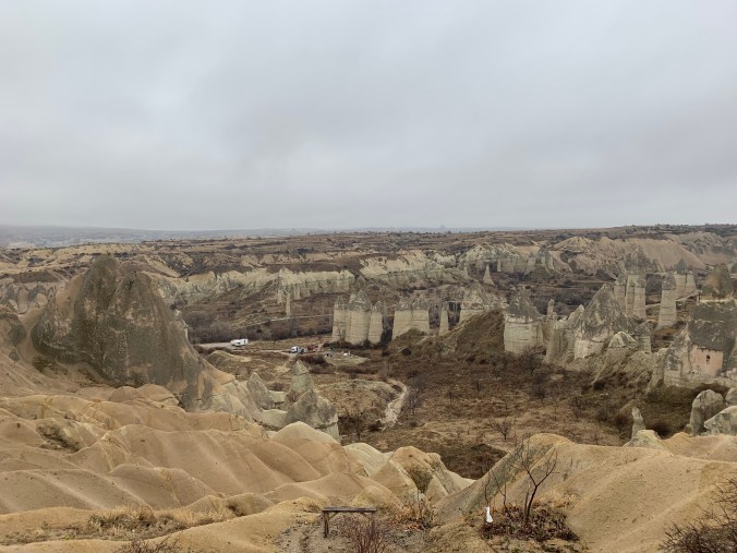 On the way to our first stop, we passed fairy chimneys. There was a volcanic eruption that caused the chimneys to form. There’s a legend that says that they’re called fairy chimneys because when the french came to Cappadocia, they thought no humans were living here but the caves looked like fairies so they thought fairies were living in them.