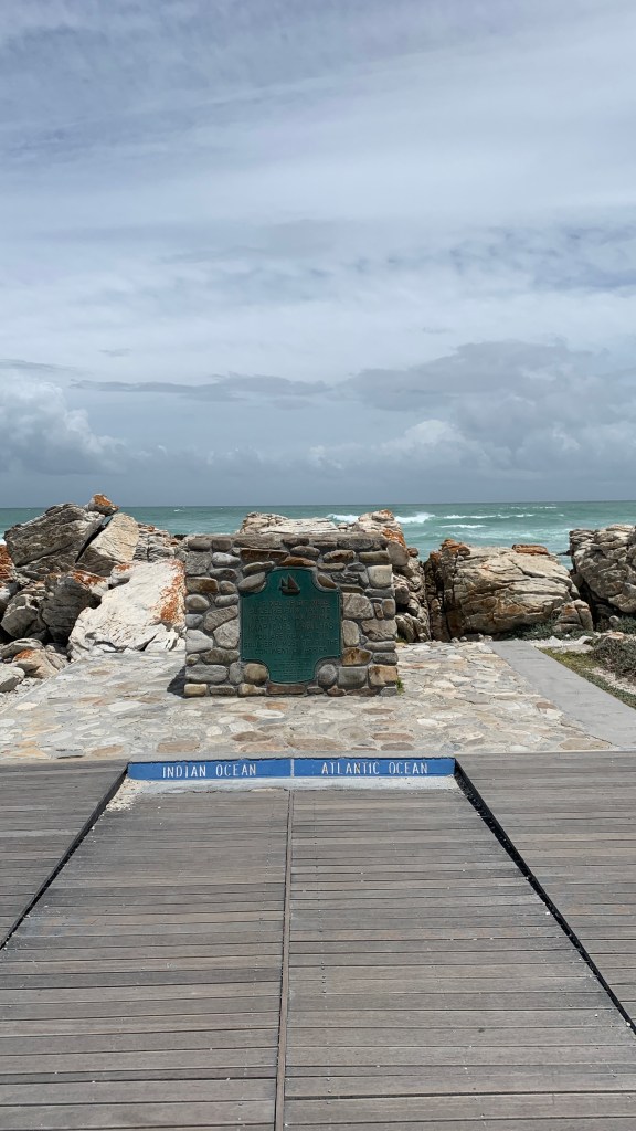 Agulhas National Park was a fifteen minute (literally not Indian time) drive from Struisbaai. There’s no entry fee here (but there really should be, like hello South African tourism). It was beautiful, you drive along the beach where the waves are crashing against the rocks. You park off and walk until the Southernmost tip of Africa. There’s a boardwalk showing exactly where the Indian Ocean and the Atlantic Ocean meet.