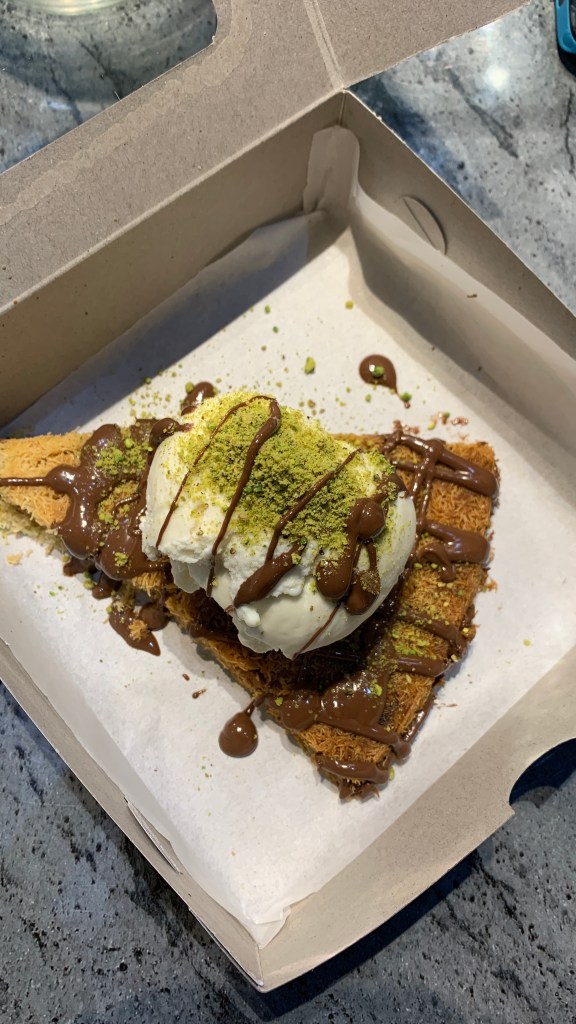 After maghrib, we went to the V&A Food Market. Most places close at 9pm here so we just ended up having some Kunafa, baklava and fudge. The kunafa was a bit different as it didn’t have cheese but it was so so good.