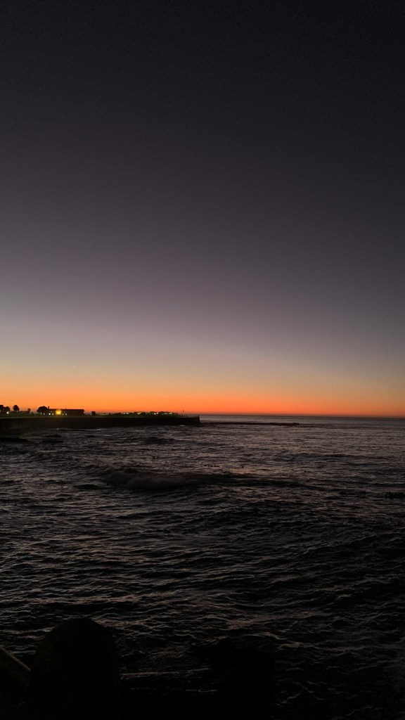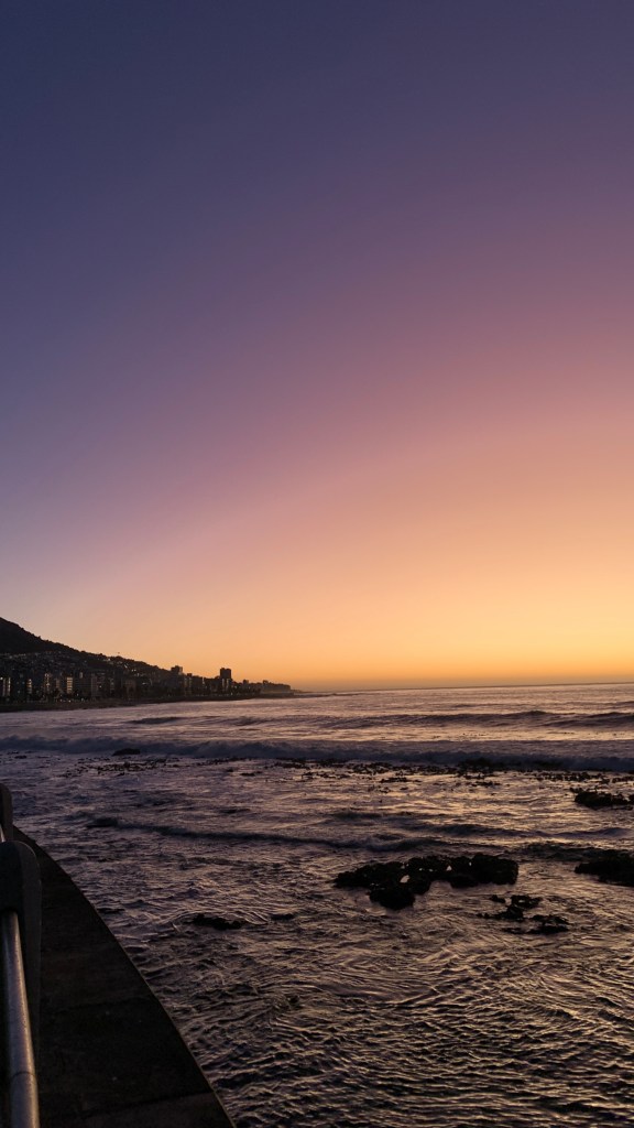 We decided to catch the sunset from Mouille Point. We walked about 2 kilometres on the promenade and boy, was it worth it! My favourite combination is a sunset + sea. Nothing compares to watching the sun set on the water. I honestly didn’t want to leave and I wish I could’ve just frozen the moment. I couldn’t help but think that Allah has perfectly planned how every wave will hit the shore and how every ray of sunshine will change colour, so how can we doubt that the plan Allah has for us is anything but perfect?
