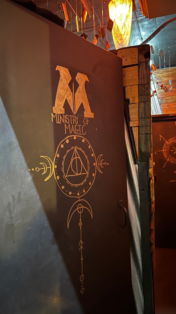 The bathroom of this cafe is filled with intricate details from the series including the toilets leading to the Ministry of Magic and the mirror in the bathroom asking “Have you seen this wizard?”.