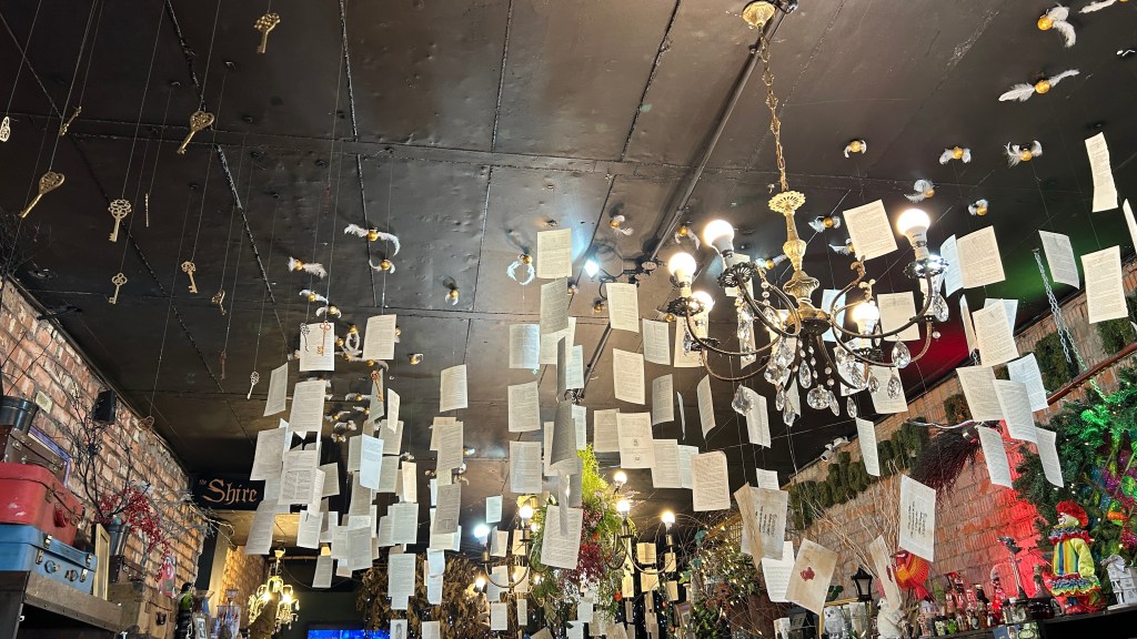 The Shire has a beautiful window that holds wands from Ollivanders and a Firebolt which immediately makes you think of Sirius Black.