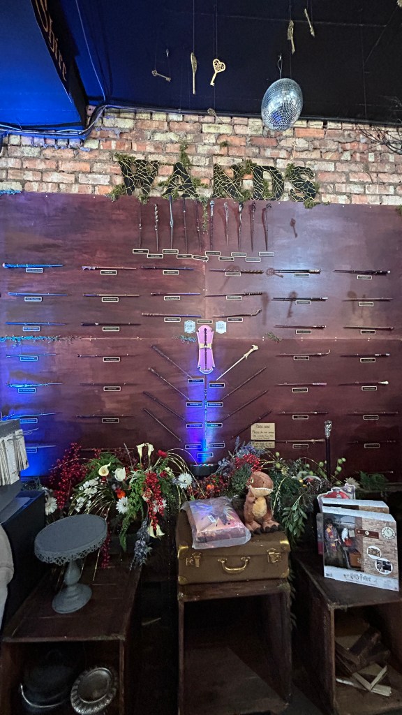 The opposite wall is filled with (expensive!) merchandise from the series. There’s a range of scarves, books, water bottles and even candles that every Potterhead needs. There’s even a little Honeydukes cart with sweets from the Hogwarts Express.