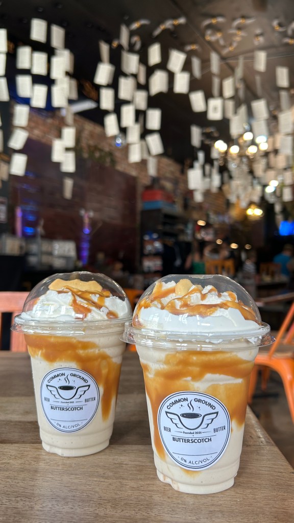 We bought some Butterbeer (0% alcohol) and it was delicious! It even came with a Harry Potter marked biscuit.