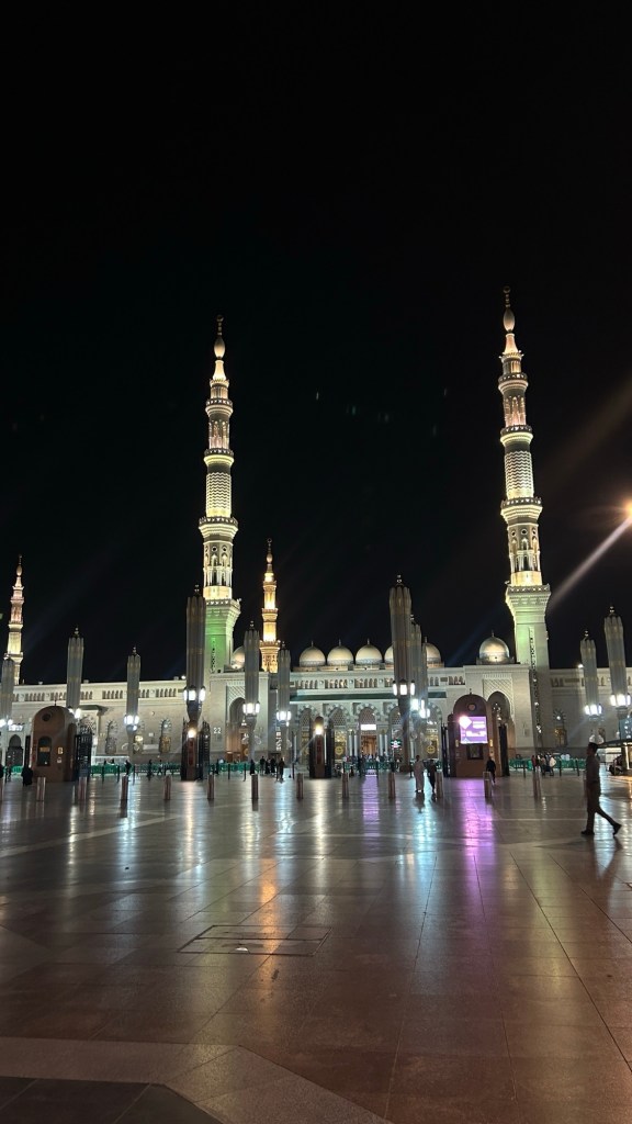 One can’t help but wonder about the excitement the Ansaar must have felt knowing that Nabi ﷺ was going to be in their city. Before we knew it, the signs on the road were showing Al Masjid Al Nabawi and then we were in the very much familiar haram area.