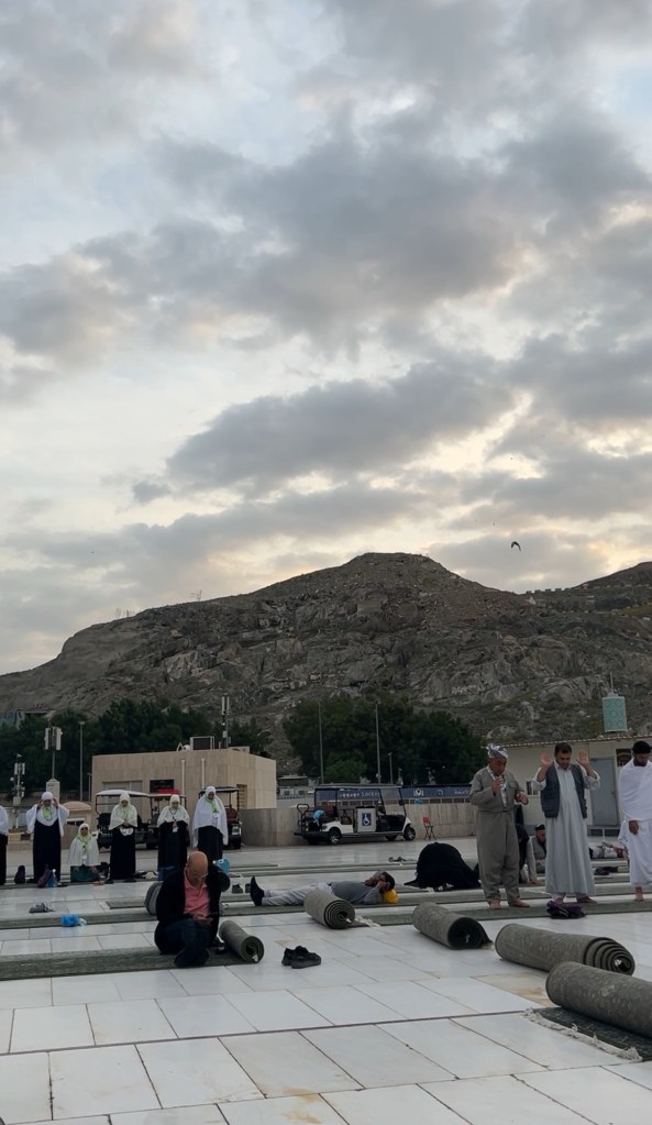 The light black – the sky in Makkah isn’t pitch black – to dark greys to stunning shades of pinks and purples. It was the perfect sunrise to end our trip. It was completely mesmerising.