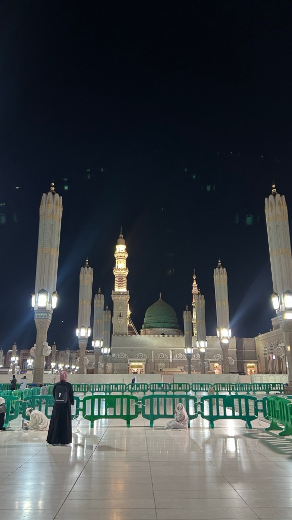After playing with Yusuf, I took my cousin to make salaam at the Green Dome. Being in the resting place of Nabi ﷺ brings peace to one’s heart. We just sat there and enjoyed the late Madinah night.