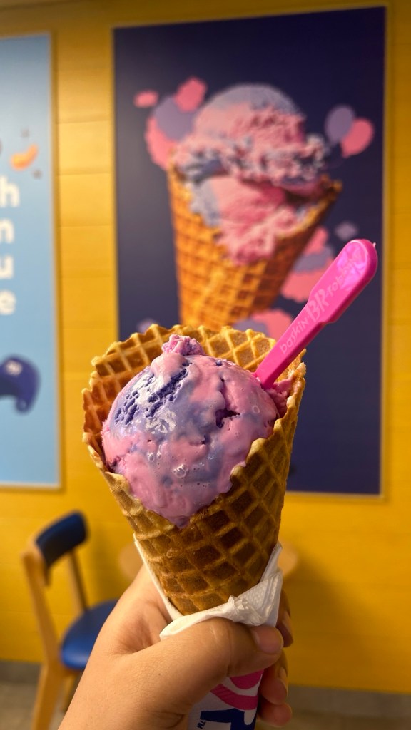 Now we were on a mission for some Baskin Robbins and then a last salaam. We walked to the Baskin Robbins and I got some Cotton Candy in a cone for the last time. Mission 1 successful.