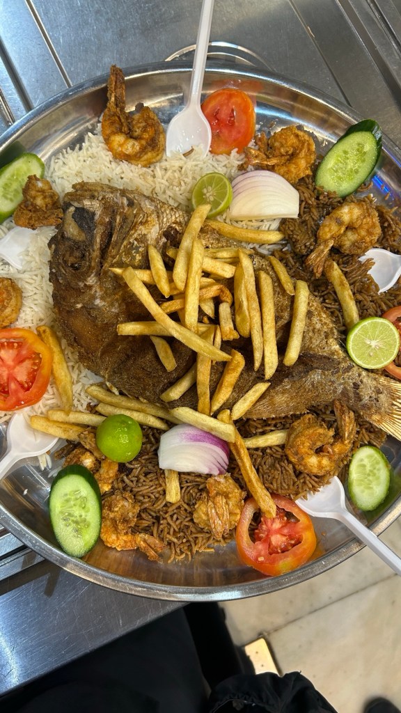 Since it was our last night in Madinah, my Mamajee decided that we were going to go out for supper. After lots of research, he decided on Bangla Fish Restaurant which was about a fifteen minute Careem ride away.