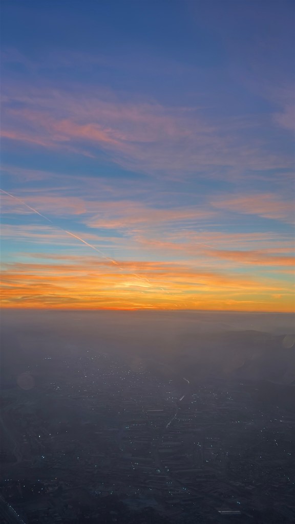 I spent the next five hours going in and out of sleep until eventually my sister woke me up to see the sunrise. Pictures does not justice to how pretty the sunrise was – up in the air, you really are chasing it.