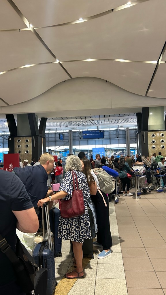 The transfer arrived just before 6pm and we were packed and ready to go in no time. After a quick 15 min drive to the airport, we arrived to absolute madness at ORT. For anyone travelling this holidays, arrive for your flights way ahead of time because the queues are insane.