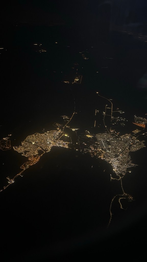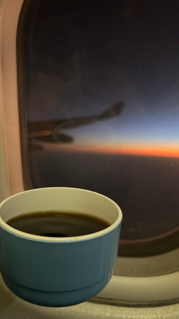 The cabin crew gave us some breakfast – I had some coffee and I promise, drinking coffee thousands of kilometres in the sky slaps different.