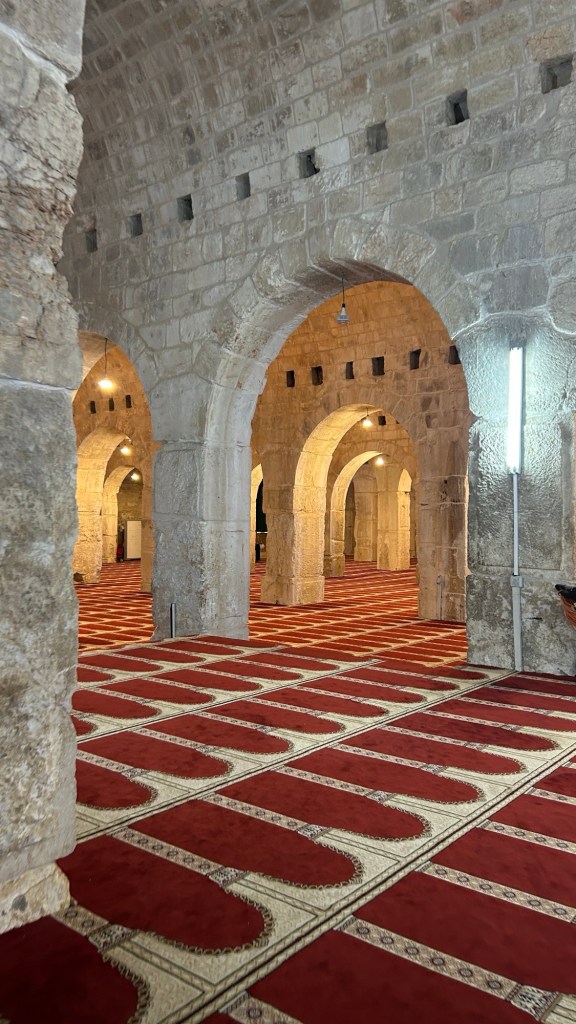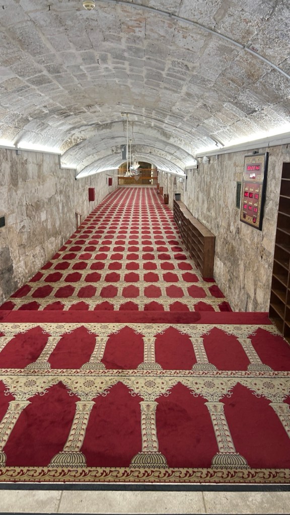The next masjid we visited was Old Aqsa mosque. Abeer reminded us that names does not mean facts. Old Aqsa mosque is a basement and it was built by Romans. The stones and columns go back to those times. Some say this is the gate was where Nabi ﷺ entered to mi’raaj. Isa A.S. also passed through this mosque and so did Nabi Zakariyya A.S., Nabi Yahya A.S. and Sayyiditina Maryam A.S.
