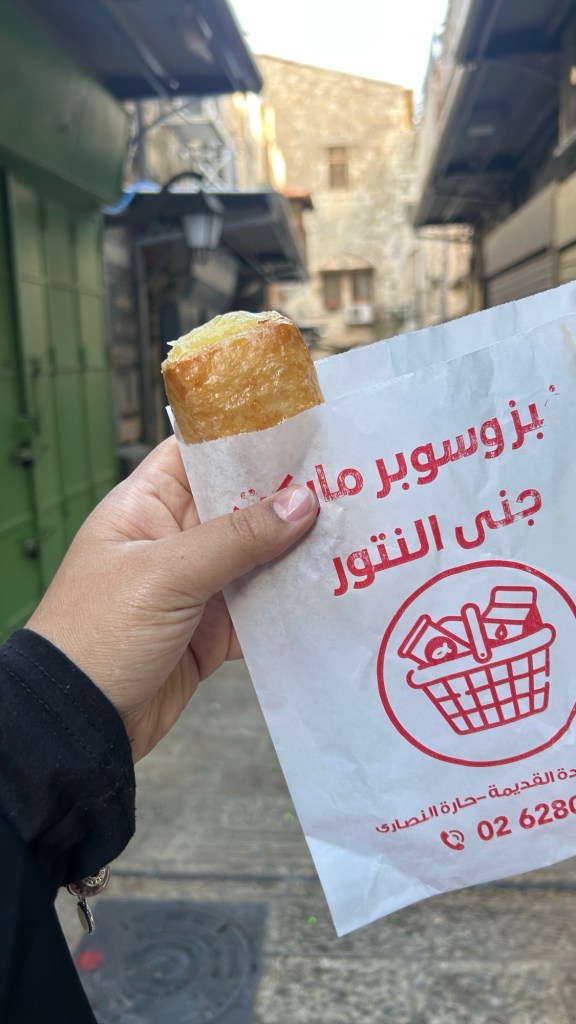 This morning we read Fajr in the room and then we went back to sleep until breakfast. I got ready and then I went downstairs to the basement and found Uncle Hisham preparing breakfast for everyone. I went to buy some extra rolls and hummus at a bakery around the corner and ended up having the BEST custard danish of my life. 10/10 – chef’s kiss – wow, just wow. It was from Tannour.