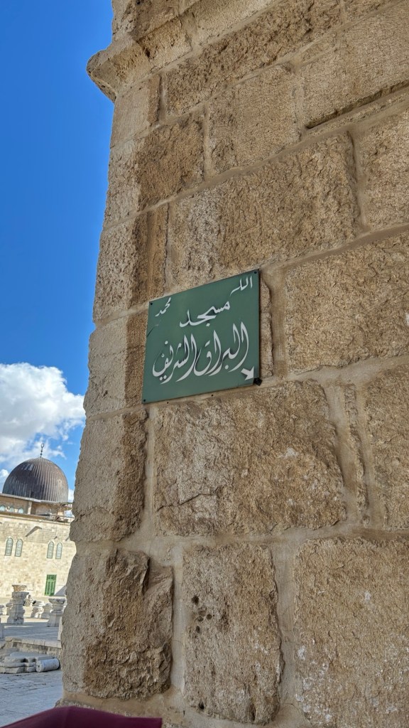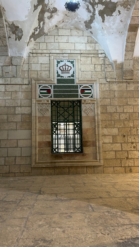 Our first stop was Al-Buraq masjid. Most scholars agree the ring that Nabi ﷺ tied the buraq to is in the wall, it is not something Nabi ﷺ himself could find easily as Jibra’eel A.S. had to show Nabi ﷺ where it was. It is also mentioned that this is one of the two places where Nabi ﷺ entered to go to the heavens on Mi’raaj. In 1929, the Jews tried to go into the masjid. People from all over Palestine came to protest especially women and this was called Al-Buraq revolution. It is important to call the wall Al-Buraq wall, not Western Wall or Wailing Wall.