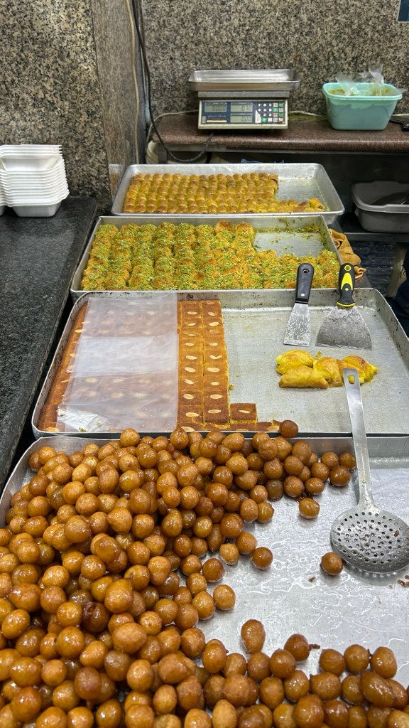 After salaah, we went Ja’fer for kunafe and baklava which was 10/10. We finally bought some gums – I promise, the gums from here are the best gums I’ve ever had. We bought phone cases with the map of Palestine and it says “On this earth, life is not worth living”.