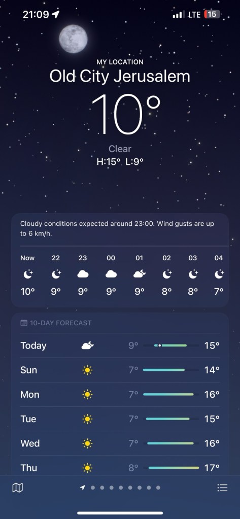 We passed some fig trees on the way back. We were super excited to go back to the old city. We reached as the sky was turning pink and after a quick stop at the hotel, we went to Masjid-ul-Aqsa for Maghrib and Esha.