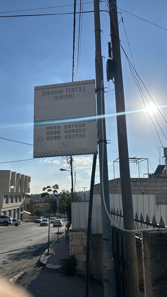 Before we left Hebron, we stopped at Hirbawi Textile which is the last kufieh factory in Palestine. The owner took us to the back and showed us how the kufiehs are made and it truly was a sight to see. We bought kufiehs and Palestinian bracelets. We then stopped to fill petrol and bought some iced coffee at the store in the garage.
