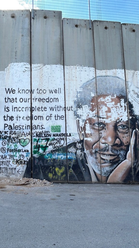 Then we went to Bethlehem. Bethlehem is in the West Bank which is surrounded by a wall that is 15m tall. The people who live in the West Bank are not allowed to leave and in these areas, only Muslims are allowed. Abu Saleh mentioned that it is not known exactly where Nabi Isa A.S. was born just that he was born in Bethlehem.