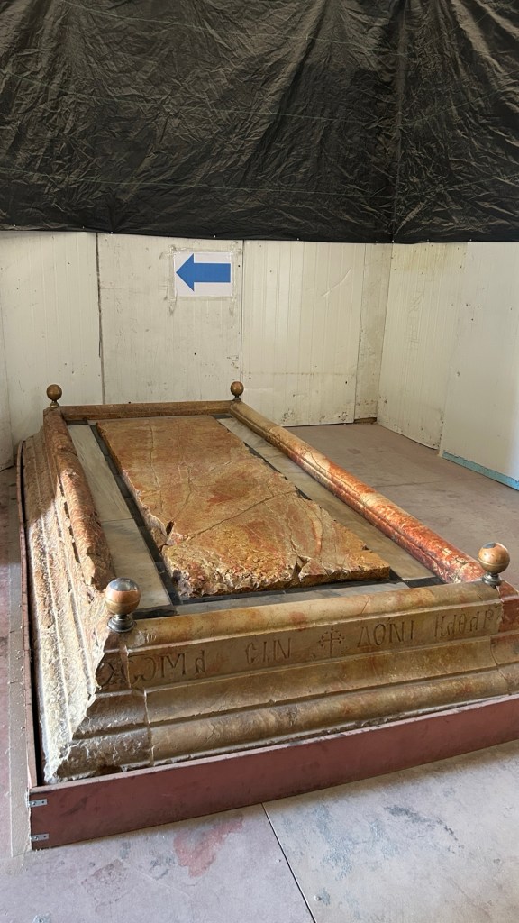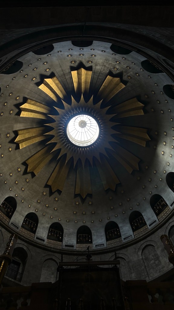 We then went to the Church of the Holy Sepulchre. This is where the beliefs between Muslims and Christians differ regarding Nabi Isa A.S. We believe that Nabi Isa A.S. (Jesus) was raised to the heavens and he will come down again closer to the Day of Qiyamah while the Christians believe that Jesus was crucified. Christians believe that the church holds the basin where Jesus’ body was washed and shrouded and the church holds the tomb of Jesus. The church is under construction but you can still enter it and see the pretty ceilings of it.