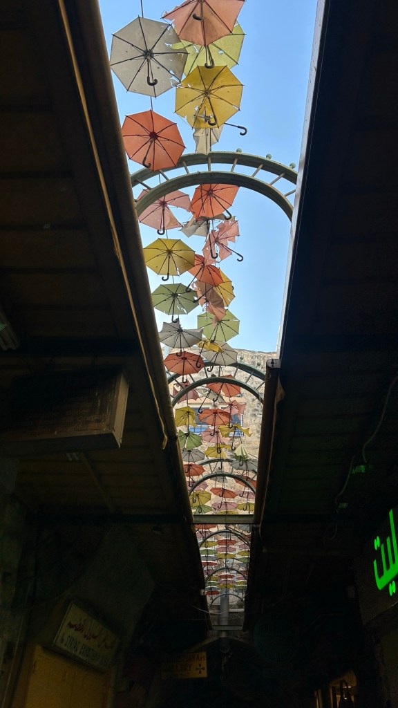 We then walked through the Cristian quarter to get to our next stop. The Christian quarter has little umbrellas hanging and it looks so cute. The guide explained that the stones we were walking on was from the time of Nabi Isa A.S. so they were about 2000 years old. We passed the Greek Orthodox Market on the way to the masjid of Sayyidina Umar R.A.
