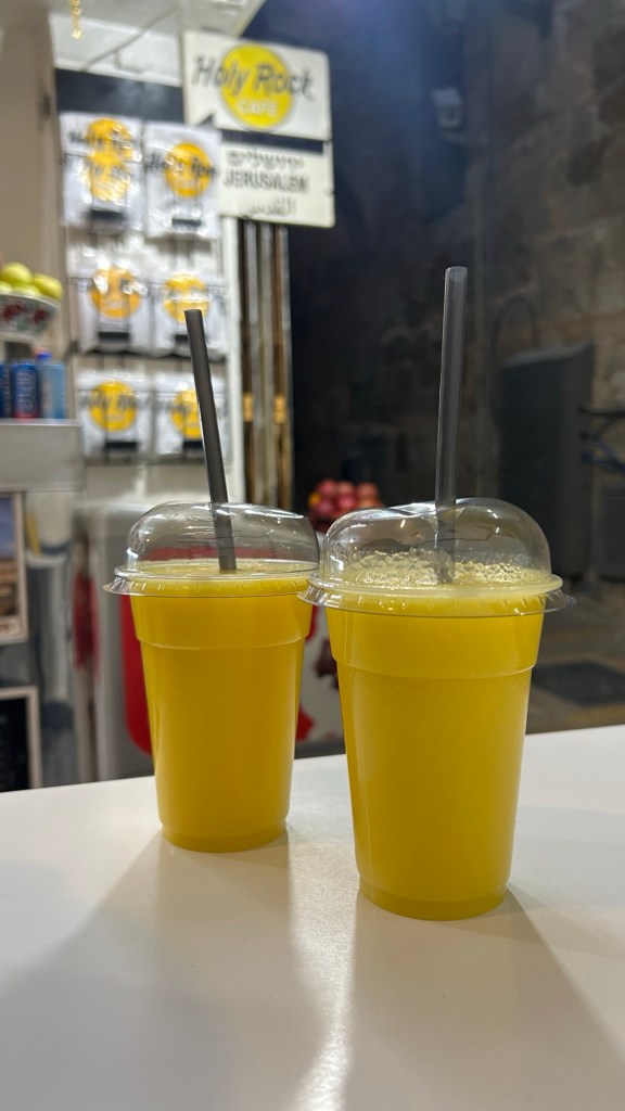 After visiting the Marwaani Masjid, our guide said goodbye to us and we decided to do some shopping in the old city. We bought some gums, spices, olive oil, ghee and a juice presser. We left everything in the room and then went to buy some fresh juice from our favourite spot: Holy Rock Cafe. Husaam pressed for us some pomegranate juice and made some mango juice. This uncle has such a good heart, I’m so sure that that is why his juice is so good.