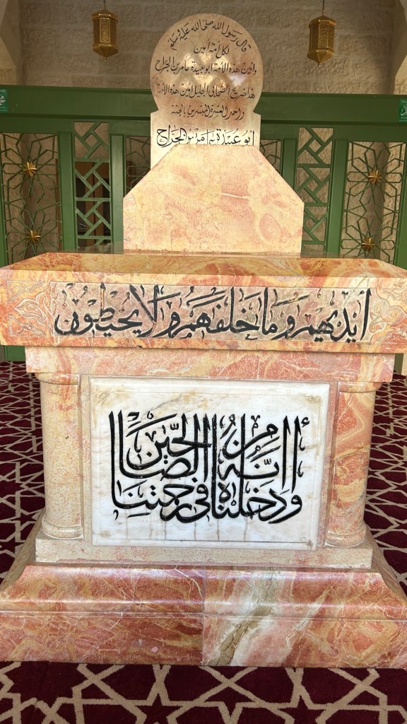 We then visited the grave of Sayyidina Abu Ubaidah bin Jarrah R.A. Sayyidina Abu Ubaidah R.A. was known as the trustworthy one of the ummah as Nabi ﷺ said (something to the effect): “Every nation has a trustworthy man, and the trustworthy man of this (Muslim) nation is Abu Ubaidah.” Sayyidina Abu Ubaidah R.A. was one of those ten sahabah (Asharah Mubasharah) who have been guaranteed Jannah by Nabi ﷺ. Sayyidina Abu Ubaidah R.A. passed away from the plague in Amwaas. This was a quick stop because when we got there, there was a janazah being taken place. The graveyard is behind the masjid.