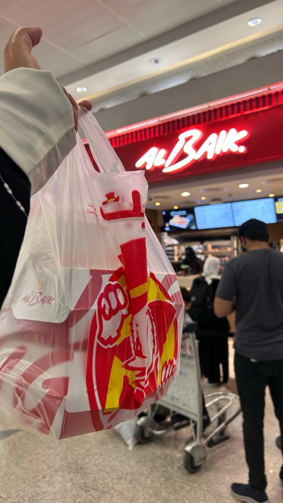 The first thing we saw was the aquarium which I still find so cool. We bought our sim cards, some mandatory big baiks from Al Baik (at this point, I was really, really missing my cousins) and went to meet our driver. We booked a transfer with Safa Marwa transport which was super efficient.