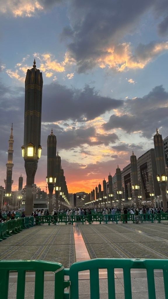 We then caught the sunset outside and heard the athaan. The athaan in Madinah honestly has my whole heart. There’s just something about hearing “Ashhadu an la ilaha illallah, wa ashhadu anna Muhammadan rasulu-Allah” where Nabi ﷺ actually is.