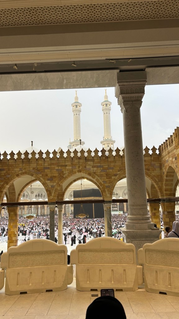 I walked into the Haram and they weren’t allowing anyone on the mataaf so I walked around for a bit. The scenes were amazing honestly. Just loads and loads of duaa and crying. Then my sister called me to let me know they were taking the escalator down to the mataaf.