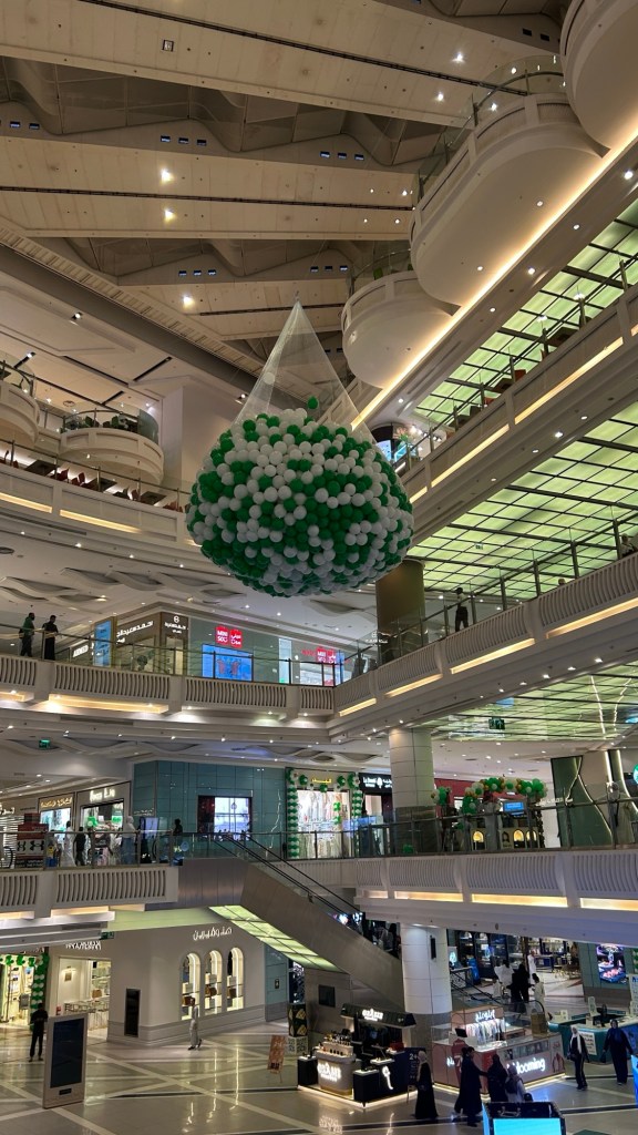 After fajr, we made our way back to the hotel where Saudi National Day preparations were in full swing. They had set up a green and white balloon drop which looked cool.