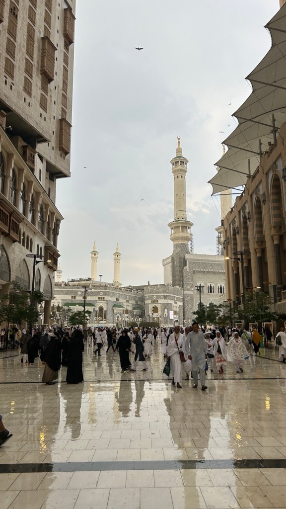 While we were in the room, we heard a bang and realised that there was going to be a thunderstorm in Makkah. I immediately got ready and made my way to the Haram. It was so cool, Makkah looks so different in the rain. It started pouring as I walked to King Abdul Aziz Gate.