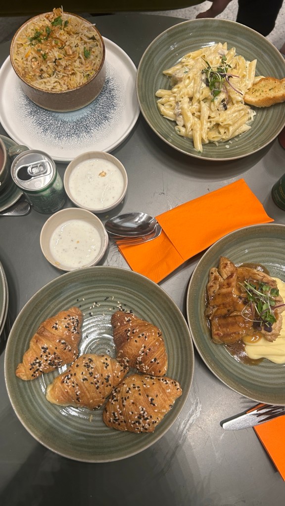 We ordered some food (the chicken biryani and the Alfredo pasta were chef’s kiss) and then I fell in and out of sleep for the next few hours.