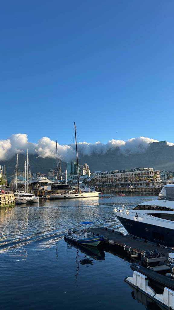 We didn’t spot any wildlife but the cruise did give us stunning views of the seemingly endless ocean, the V&A and Table Mountain. The clouds had settled perfectly on the Mountain and we were awestruck by the view.